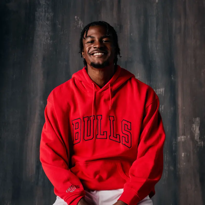 See Red in this Bulls tonal pullover hooded sweatshirt from 1966.