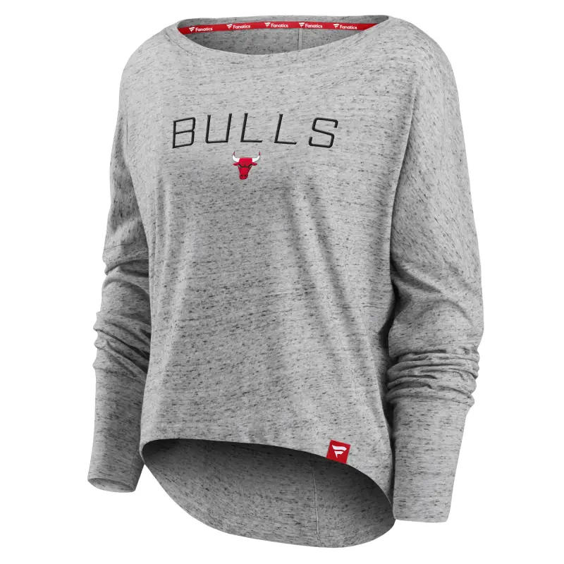 Home / Shop / Chicago Bulls / Women’s Chicago Bulls Fanatics Heathered Gray Nostalgia Off-The-Shoulder Long Sleeve T-Shirt